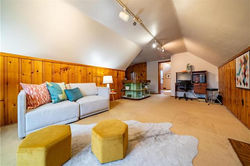 The loft area on the upper level is ultra versatile. Currently being used as a sitting room, it can also be utilized as a huge primary bedroom, a dream home office or a child's play space.